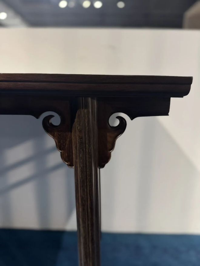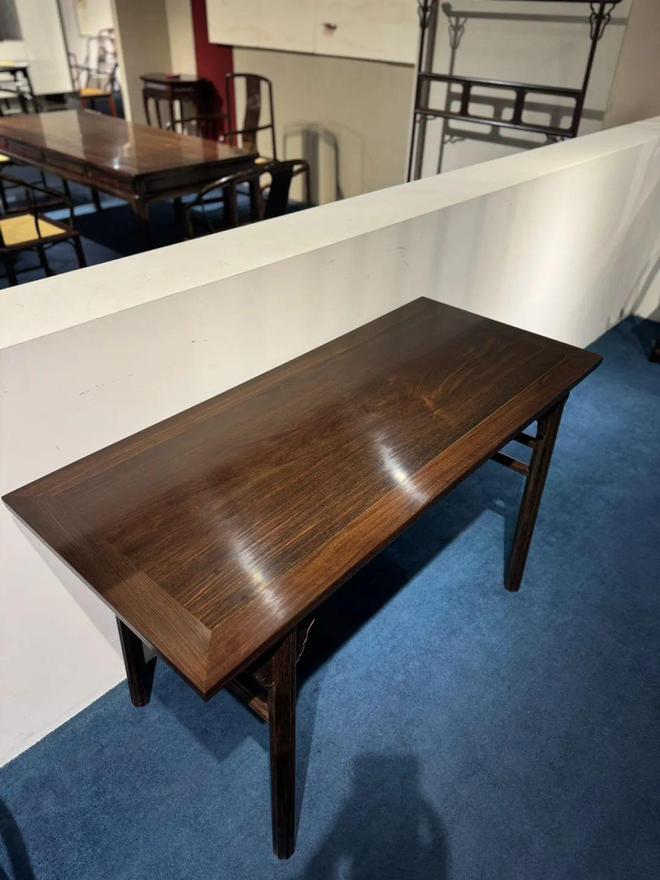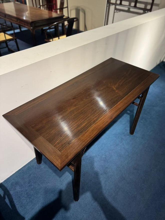 然后本质上,高端的国标木材,就应该是做得很极致,就是要做出高品质路线的方向了。今天要聊的是一张高端的老挝大红酸枝独板画案,器型虽然不大,但是做的很高端,非常高级的效果。