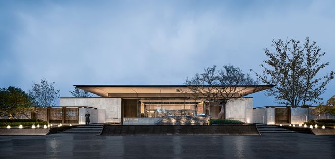 地上入户大堂采用中式经典构图方法——框景,打造未进门,先见景的效果。中国人一直讲究,生活中处处有景。框景的工艺就是能做到从任何一个框望过去都是景色,角度不同景色也不同,一步一景的效果。
