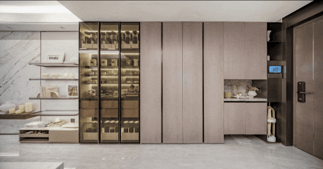 甚至还有定制瑧悦专属女生卫生间,为女主人精心打造了镜下收纳柜、金属收纳龛、侧面收纳龛等多个大进深收纳空间。