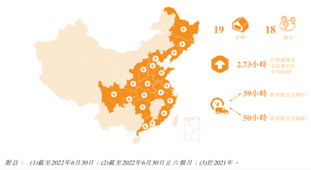 为了保证自营业务的交付效率,药师帮自建仓库,截至2021年已在18个城市建立了19个战略中心仓。截至2022年6月,仓库平均可在2.73小时内处理订单并完成发出。药师帮仓库大幅缩短了配送时间,跨省配送可实现39小时到城市,50小时到乡镇,快于行业平均水平约20%。